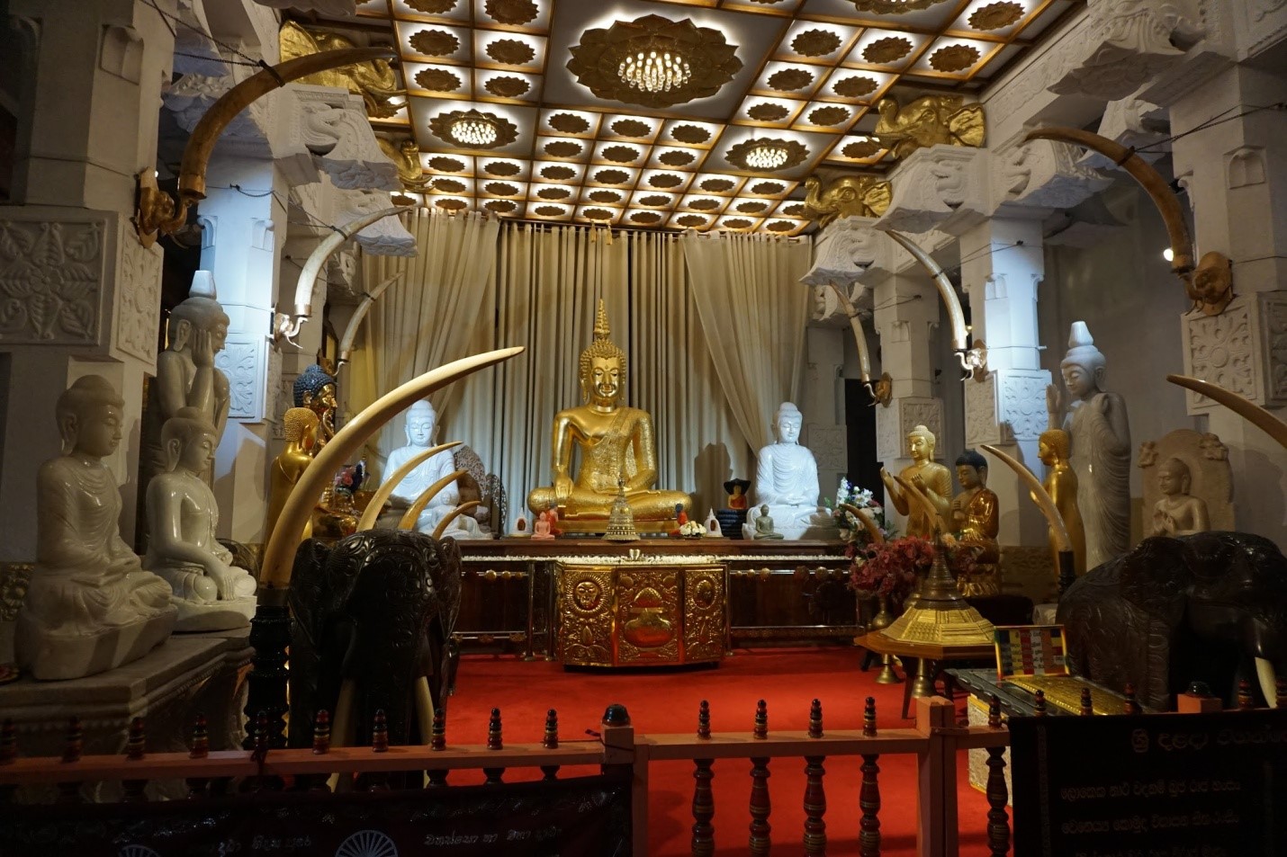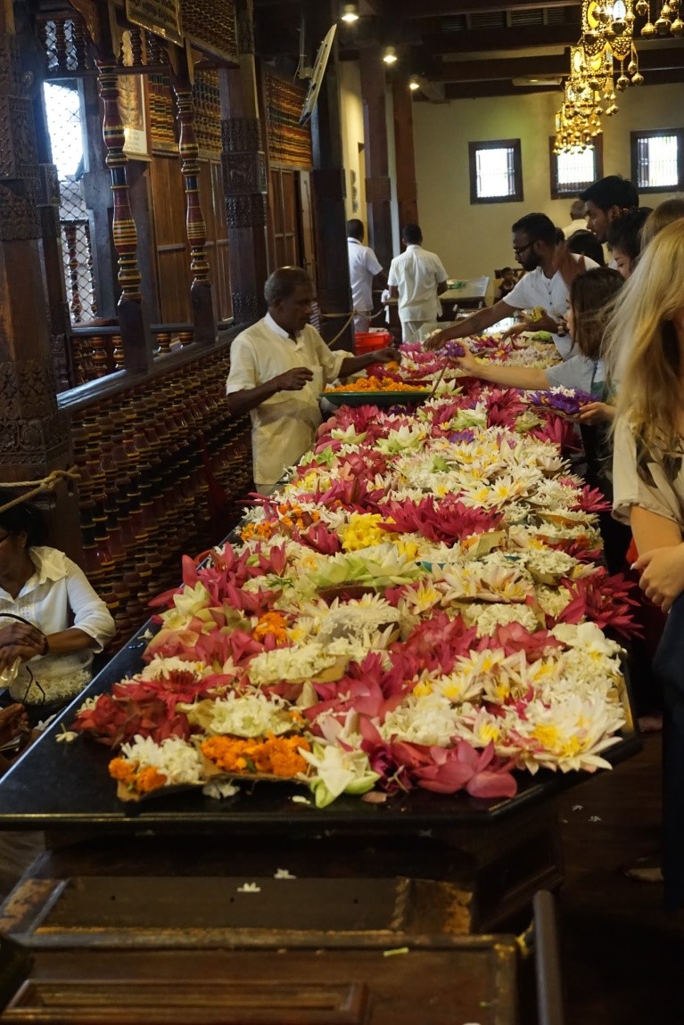 Po prehliadke skalnej pevnosti Sigiriya sme sa presunuli autobusom do mesta Kandy. V tomto posvätnom budhistickom mieste, ktoré bolo posledným hlavným mestom kráľov Sinhala, sme navštívili chrám Budhovho zuba – ten ukrýva túto posvätnú relikviu. Pred vstupom do samotného chrámu sme sa museli vyzuť a pokračovať bosí. Samotný chrám nás očaril, všade rozvoniavali lotosové kvety, ktoré veriaci prinášali ako spôsob obety. Súčasťou chrámu bola aj podobizeň slona, ktorý nosil práve spomínanú relikviu počas slávnostných obradov.