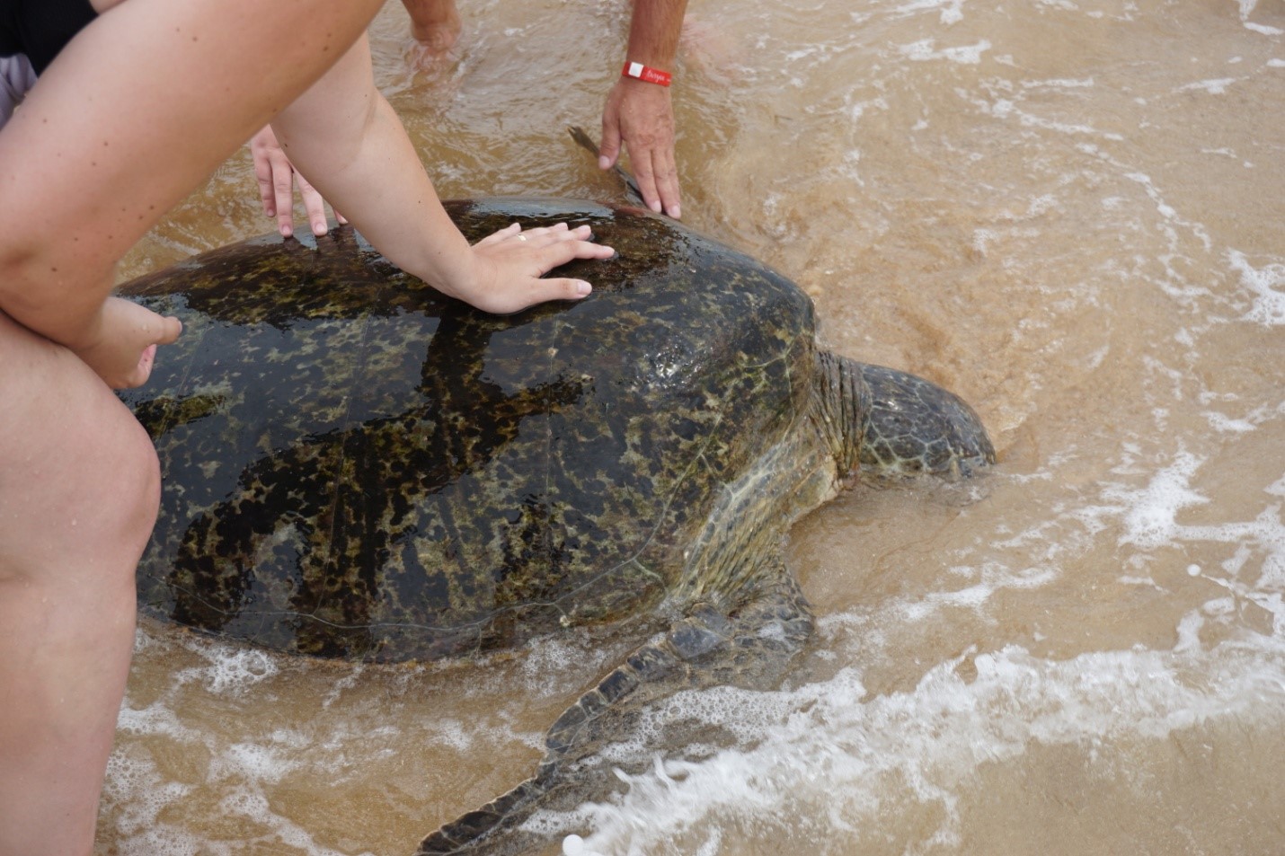 Po zhruba hodine jazdy sme dorazili do Hikkaduwa. Pláž tu bola pekná a vlny podstatne menšie, než na aké sme boli zvyknutí z nášho hotela. Tu sme sa prvýkrát odvážili okúsiť oceán. Voda bola príjemne teplá a piesok extra jemný. Bonusom bolo pozorovanie korytnačiek. Jedna prišla až k nám. Nikdy sme netušili, že sú až také veľké!